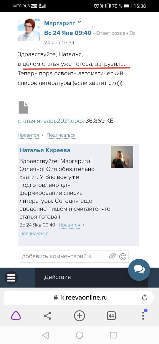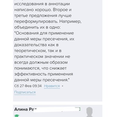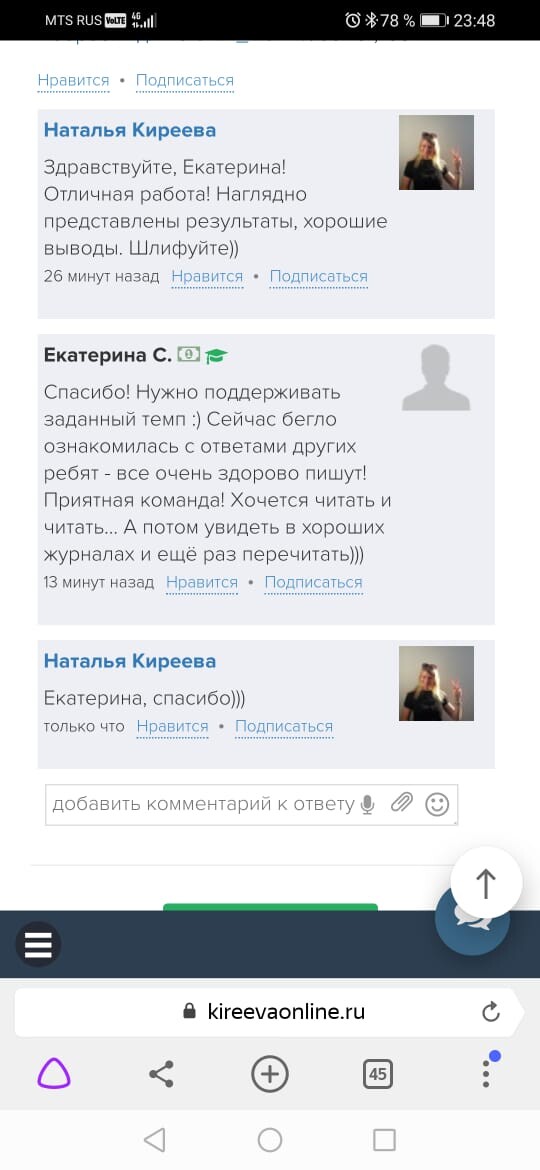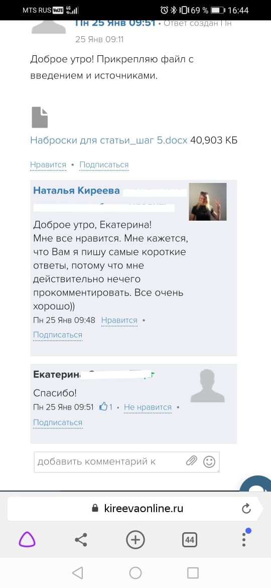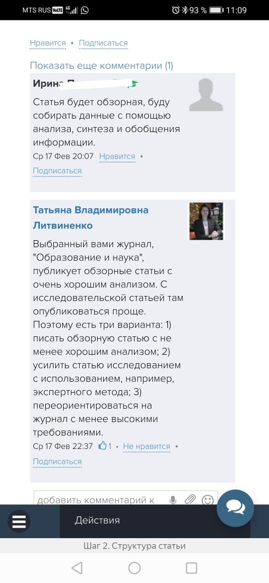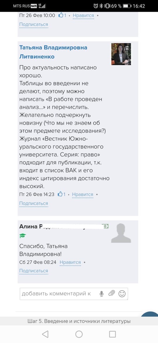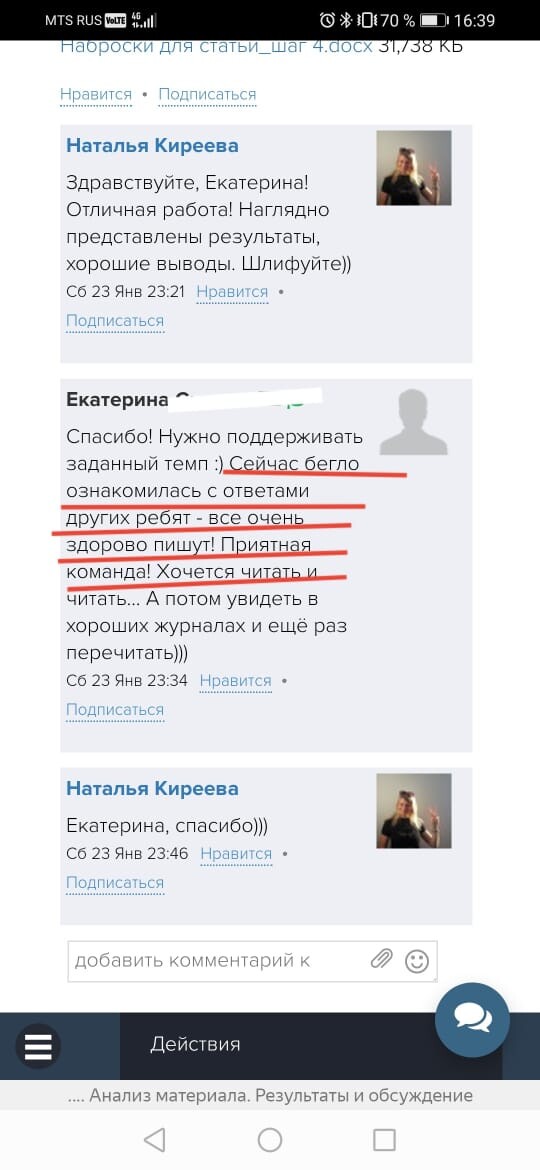 Обратная связь от эксперта-куратора курса и автора делают работу над статьей более продуктивной