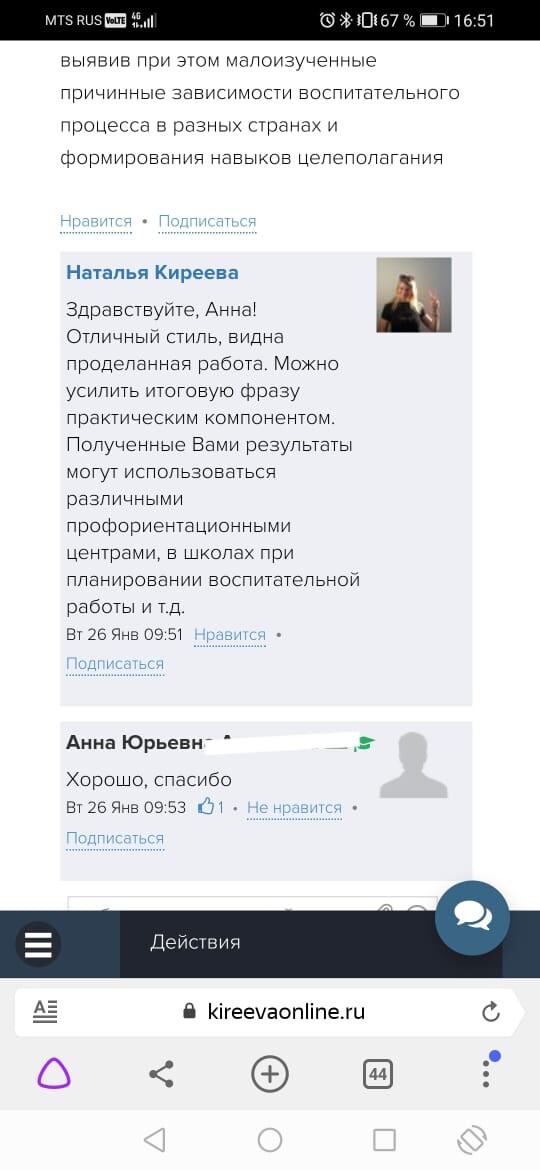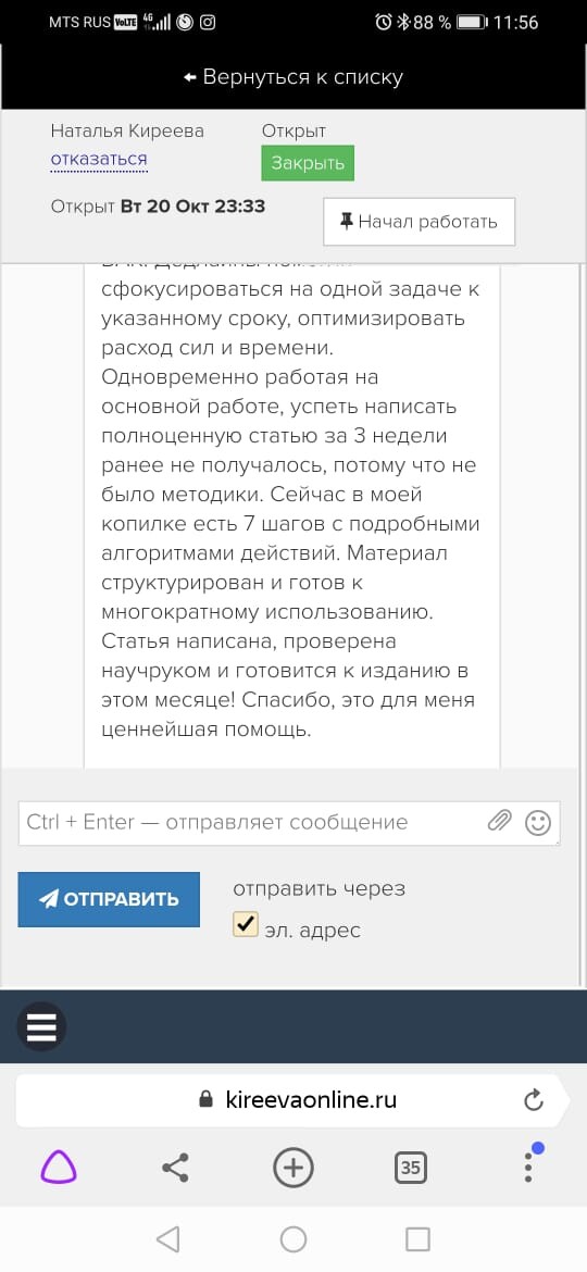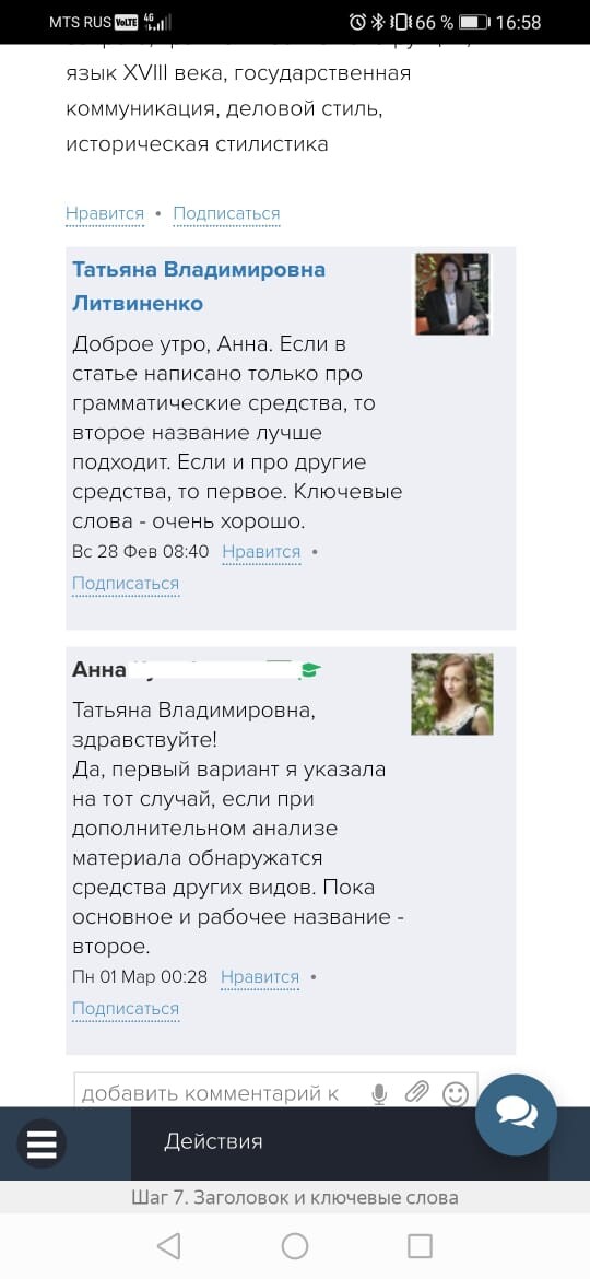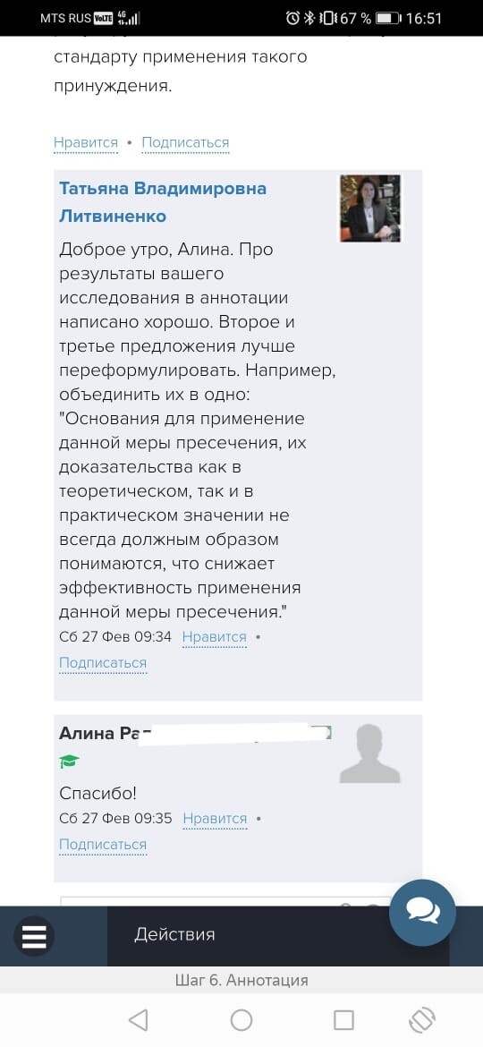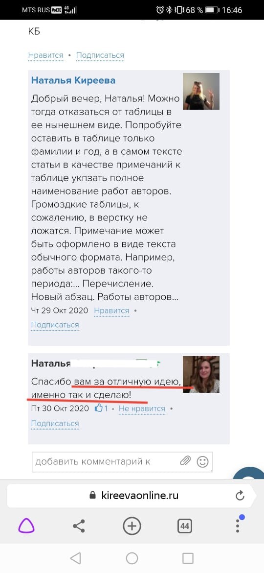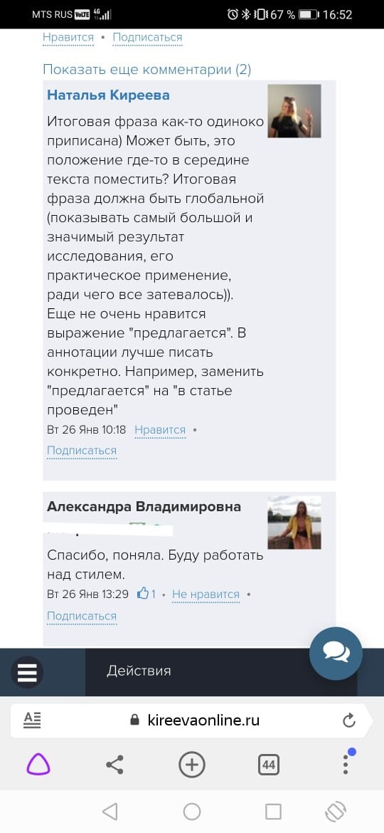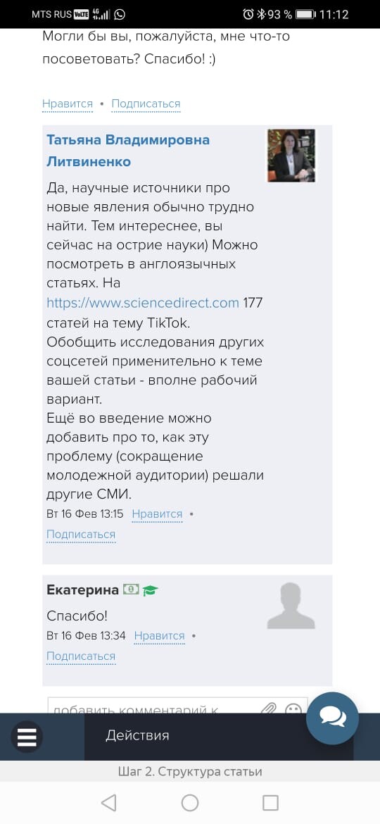 Обратная связь от эксперта-куратора курса и автора делают работу над статьей более продуктивной