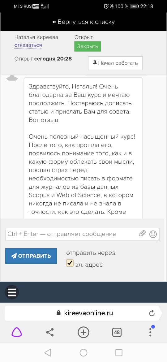 - Часто в процессе работы над статьей возникают вопросы, но ответов на них проходится слишком долго ждать (часы работы редактора, решение респондентами других задач). Я и куратор курса всегда онлайн и мы ответим на ваш вопрос, потому что заинтересованы в вашем результате. Ваши результаты составляют успех и славу курсу.