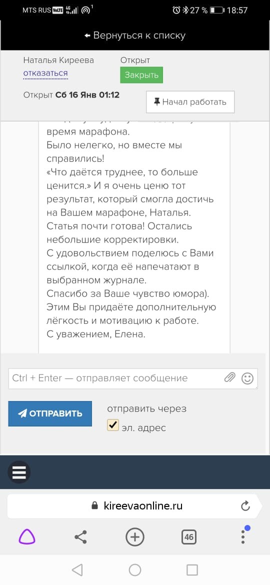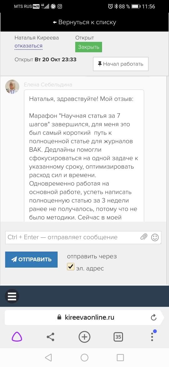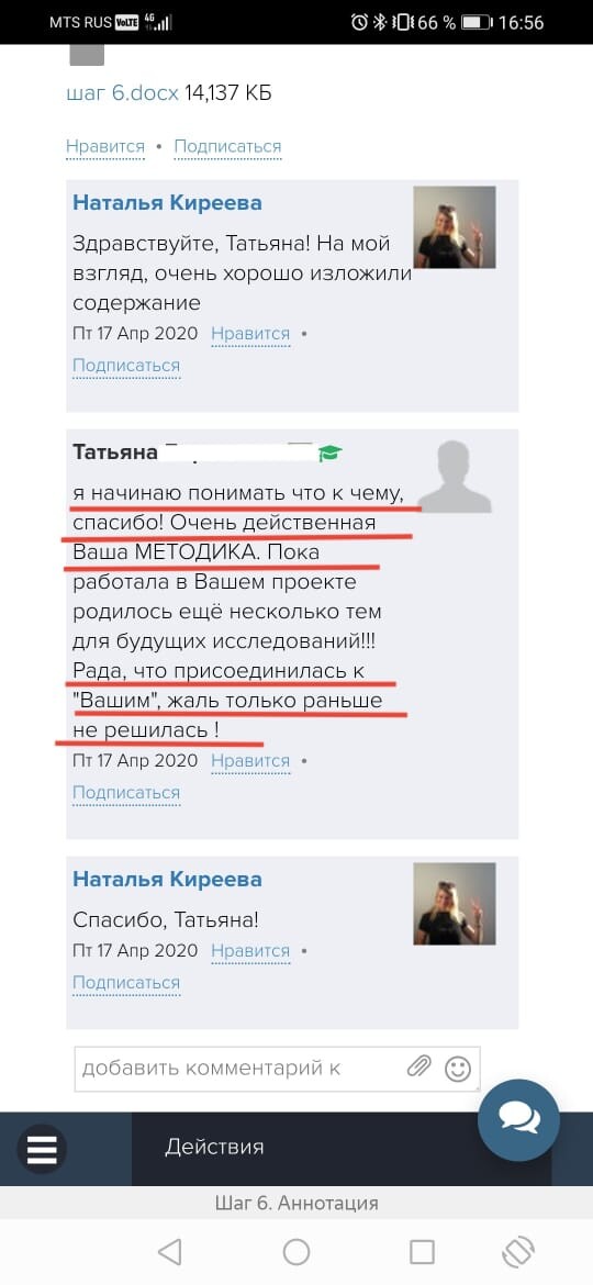 Подошел к завершению курс-марафон по написанию научной статьи. Смешанные эмоции овладевают мной. Во-первых, переполняет чувство благодарности за Ваш труд. Ее какой труд - качественно поставленный и проведенный 14-дневный марафон. Во-вторых, чувство восторга от работы в команде, ограничение во времени дает мощную мотивацию не подвести руководителя проекта и сдать все своевременно. Быстрая обратная связь, необходимая в процессе обучения. В-третьих, недоумение и восхищение от соотношения цены, форм и качества предоставляемого материала (описание, видео, презентация), времени, уделяемого преподавателем при переписке! До новых встреч на марафонах знаний!!!