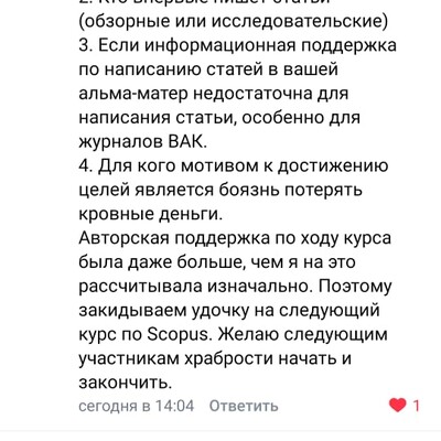 Очень интересная и нужная программа! Я всем своим аспирантам и магистрантам рекомендую. И они действительно пишут статьи. Наталья всех очень хорошо мотивирует и правильным приемам учит. Задания дает и проверяет, а в итоге по заданиям сама собой формируется статья!